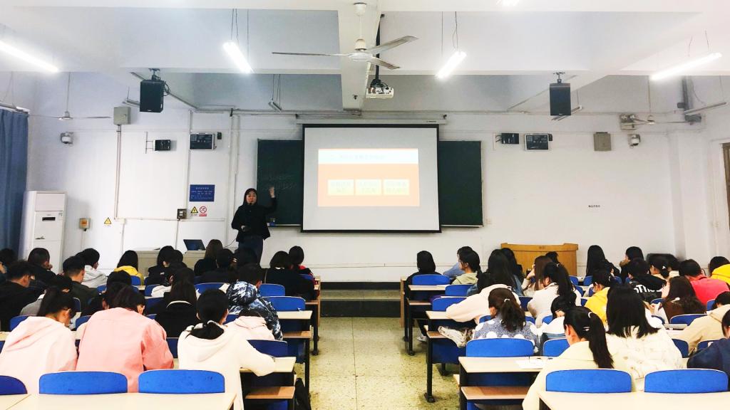 11月11日,太阳成tyc33455ccwww于第三教学楼A101召开职业生涯规划讲座,邀请长安区劳动就业服务局国家SYB、IYB创业培训讲师李海霞主讲,2019级部分员工参加。
