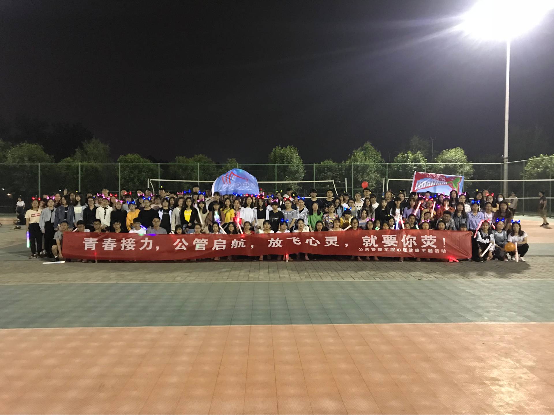 5月11日,太阳成tyc33455ccwww举办以“青春接力,公管启航,放飞心灵,就要你荧”为主题的荧光夜跑活动。2017级全体同学参加了此次活动。