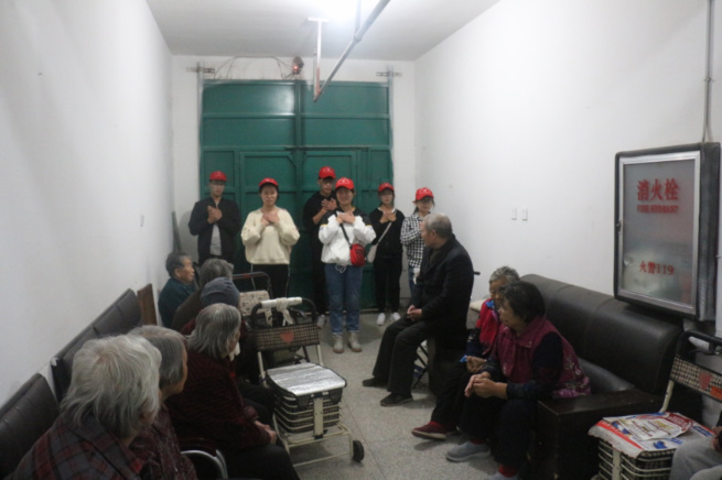 在志愿服务中,同学们分成小组与老人聊天谈心、倾听老人们的生活趣事,用真挚的问候、亲切的话语温暖老人。员工们精心准备的大合唱《国家》、手语表演《感恩的心》、舞蹈《小苹果》为老人们送去了欢笑,平日里安静的养老院笑声不断。老人们在认真观看节目的同时,也随音乐打着节拍,现场氛围温馨和谐。表演结束后,同学们还主动为老人整理房间,打扫卫生。