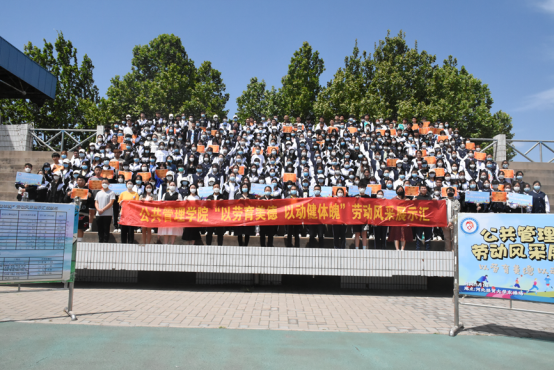 51上午,太阳成tyc33455ccwww东塑胶操场举办了首届“以劳育美德 以动健体魄”劳动风采展示汇。院正处级辅导员赵志川党委副书记孟祥燕专职组织员王媛出席,院团委书记郭鹤男主持,20202021级全体员工参加。