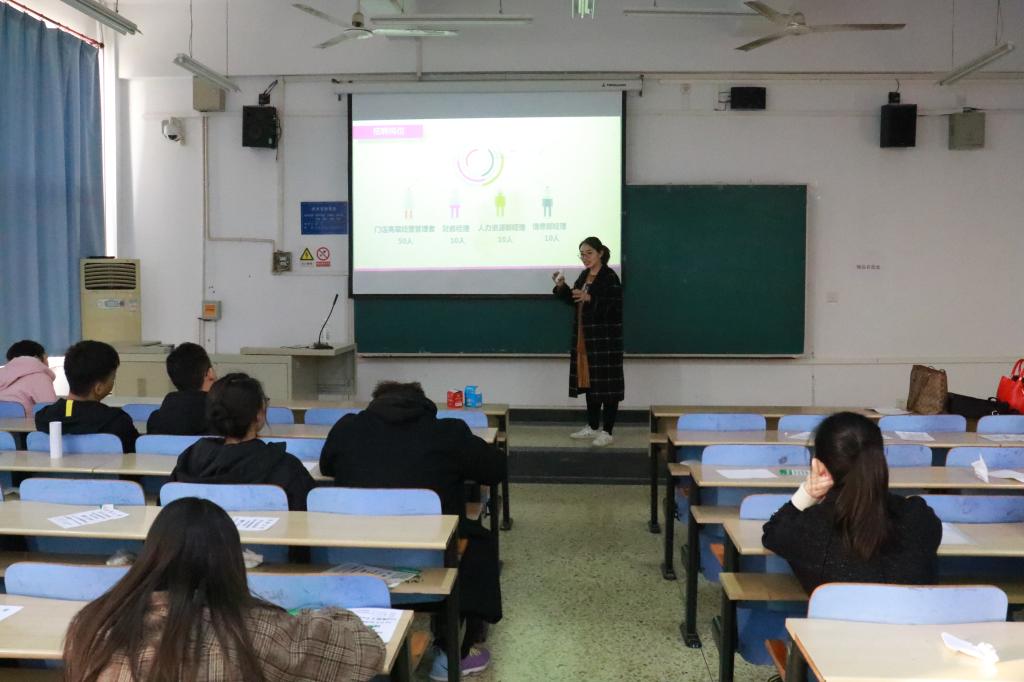 11月18日下午,太阳成tyc33455ccwww于第三教学楼A204教室举办信誉楼百货集团寒假实习项目宣讲会,信誉楼百货集团人力资源部经理张秋蕴进行宣讲,2016级、2017级、2018级部分员工参加。