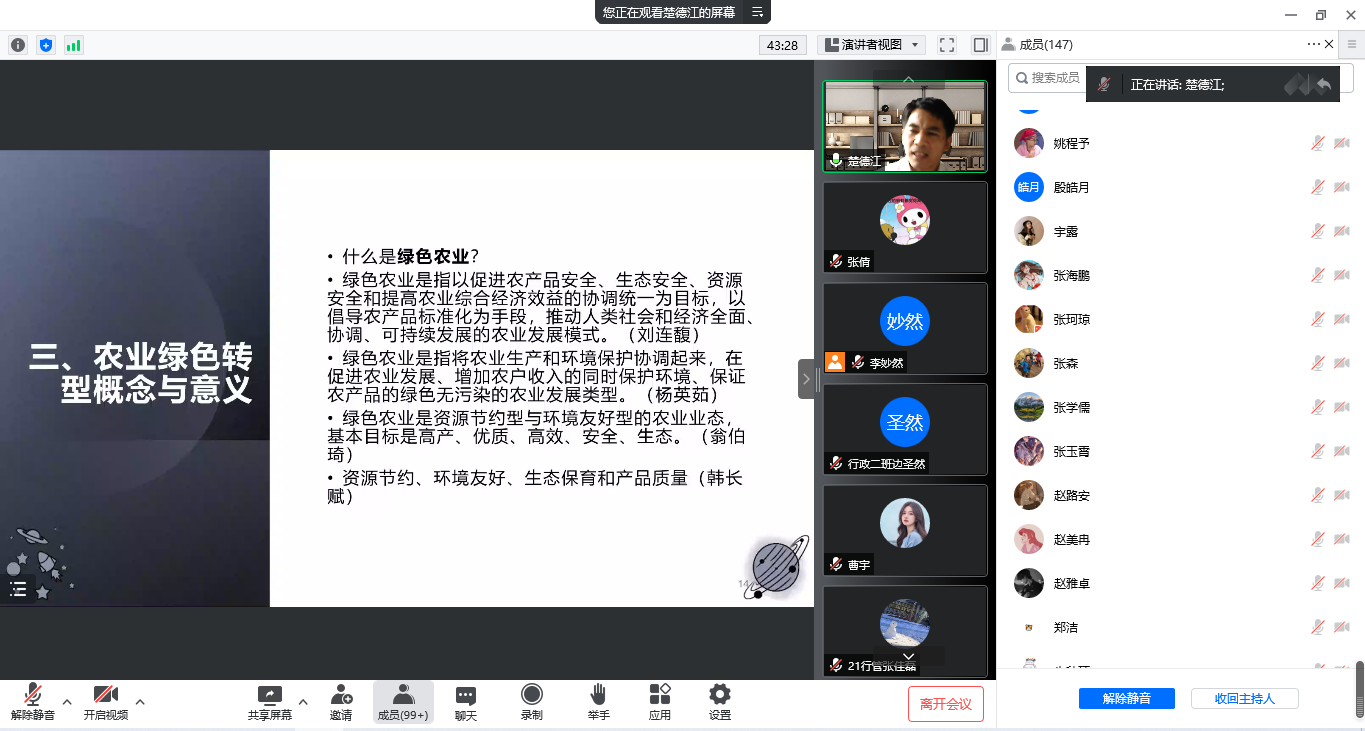 本次讲座加强了公司师生对农业绿色发展的认识,增加对国家相关农业政策的关注,对师生们深入研究绿色农业及城乡融合发展起到积极作用。