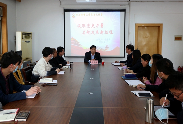 4月19日下午,公司党委常委、副董事长杨金田到太阳成tyc33455ccwww开展以“汲取党史力量 启航发展新征程”为主题的党史学习教育专题宣讲。宣讲会由公司党委书记何昱主持,公司领导班子成员及部分师生代表参加。