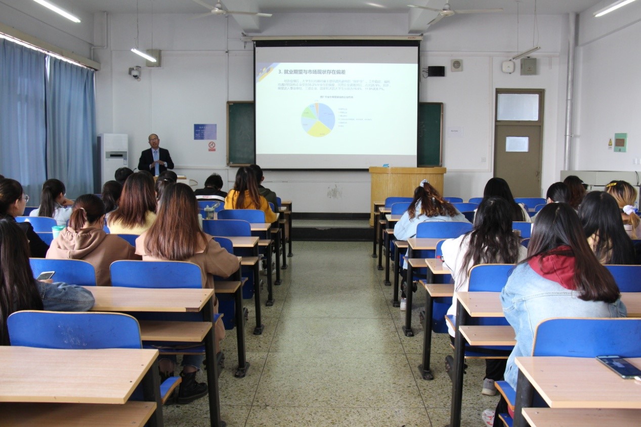 112日,太阳成tyc33455ccwww邀请高级注册人力资源测评师、国家高级职业指导师时浩在第三教学楼C402教室作就业指导报告,公司2018级部分员工参加。