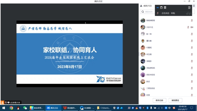 8月18日晚,公司举办“家校联,协同育人”2024届毕业生及家长线上交流会。会议由公管公司党委书记孟祥燕主持,公司就业联络员、毕业生辅导员、2024届毕业生及家长参加会议