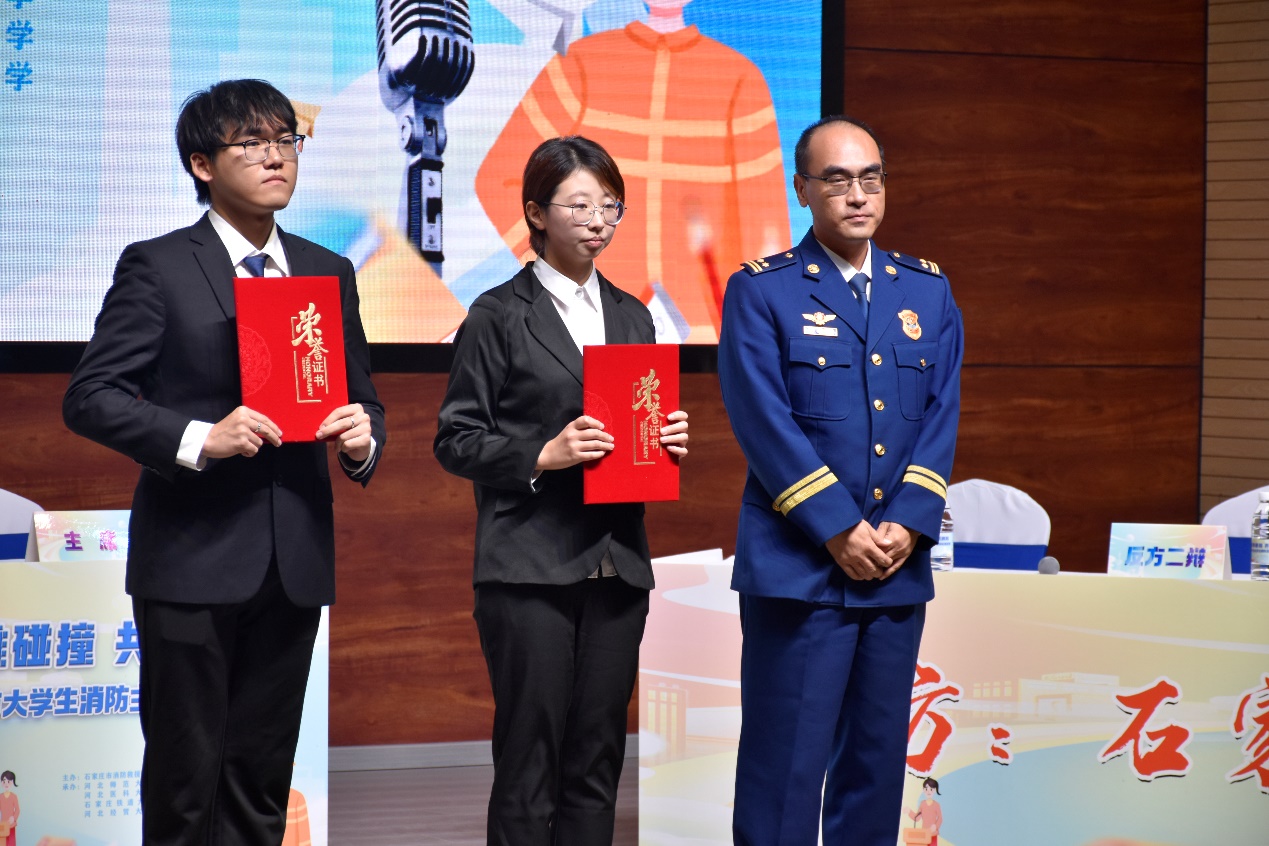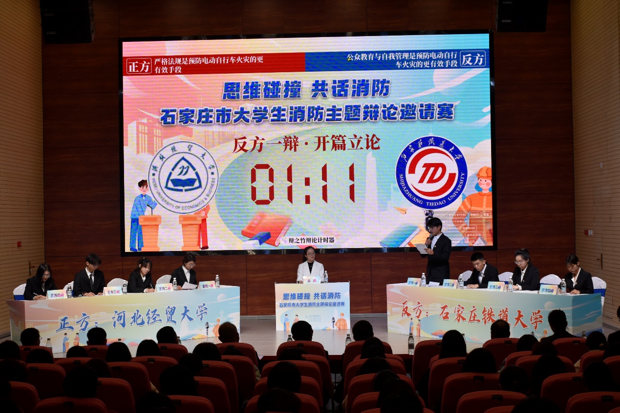 经过激烈角逐,公司闻鸣辩论队荣获优胜奖,丁利伟荣获最佳辩手称号。赛事共分为两场,河北师范大学真知辩论队、河北医科大学争鸣辩论队围绕“畅通生命通道,核心在于强化监管执法力度还是在于公众共识共治”展开辩论,太阳成tyc33455ccwww闻鸣辩论队、石家庄铁道大学博论辩论队围绕“严格法规还是公共教育与自我管理是预防电动自行车火灾的更有效手段”进行交锋。