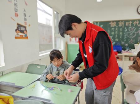 本次活动采用红色故事宣讲和艺术实践的形式深化红色教育。宣讲团成员化身历史讲述人,以生动鲜活的语言,通过革命故事讲述、历史场景再现等形式,带领小员工们系统了解遵义会议的关键转折意义;随后开展的《红星歌》教唱环节,志愿者们通过歌词解析、旋律示范,引导小员工们理解歌曲中蕴含的理想信念;艺术实践环节将创意注入红色传承,志愿者带领小员工们制作手工绒花,大家将绒芯轻轻捻出花瓣弧度时,金属丝在掌心传递的不仅是工艺技巧,更是对“百折不挠”革命精神的可触化解读。