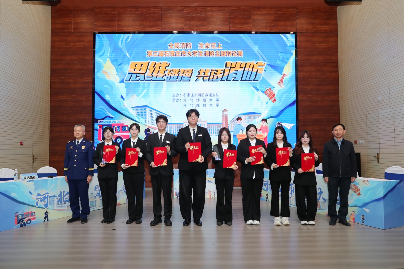 11月13日,由石家庄市消防救援支队主办、公司与河北师范大学联合承办的第三届全市老员工消防主题辩论赛圆满落幕。公司辩论队代表公司参赛。